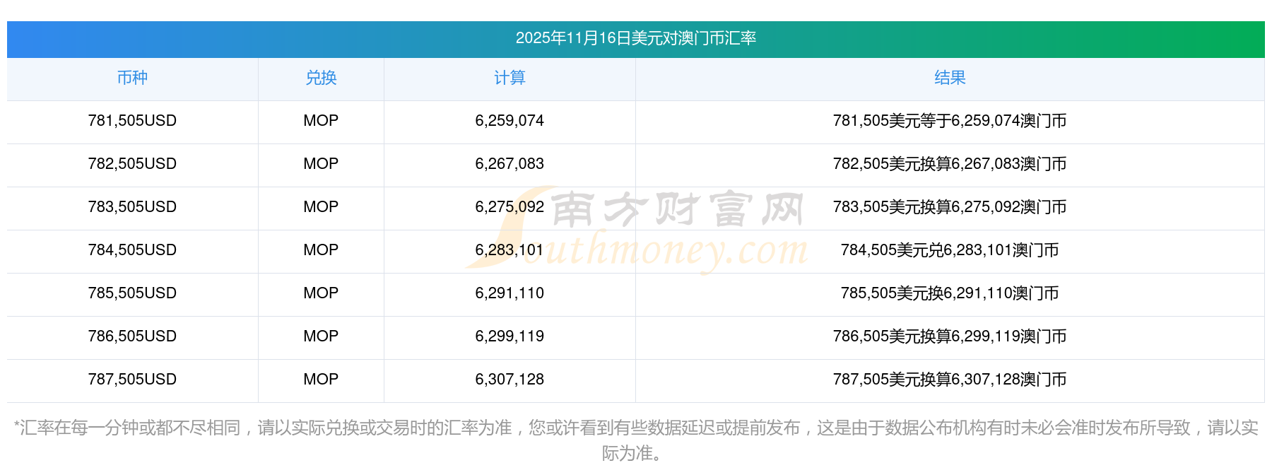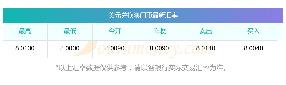 今日澳門幣匯率行情:100美元兌澳門元匯率多少(11-16)