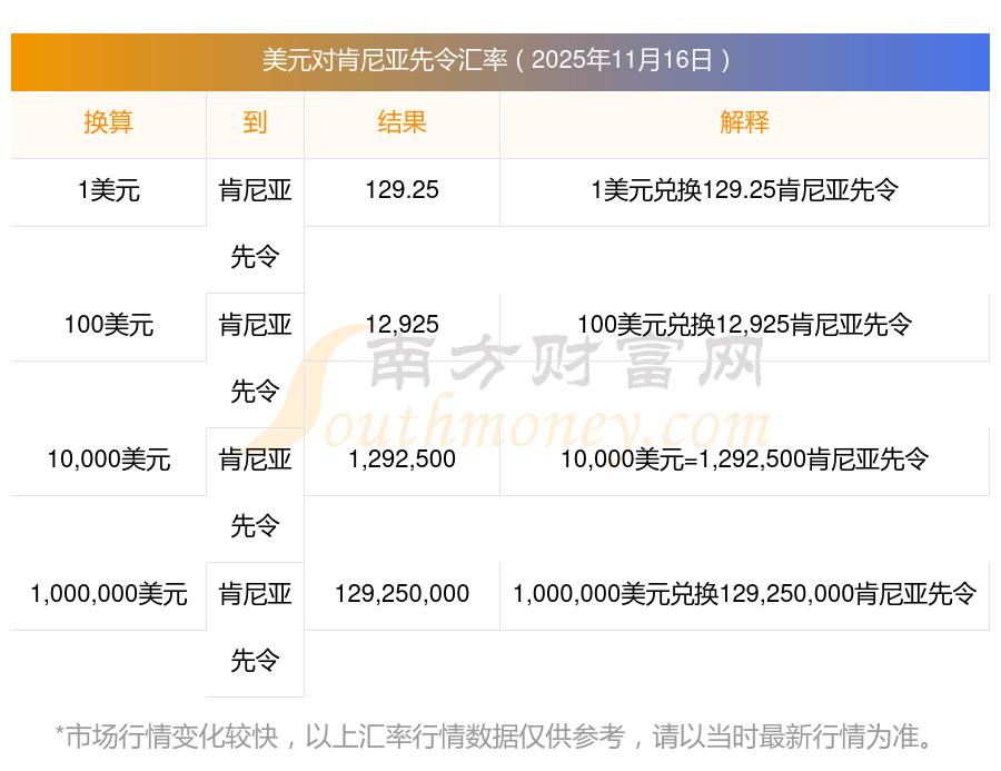 2025年11月16日美元與肯尼亞先令的兌換匯率計(jì)算如下: