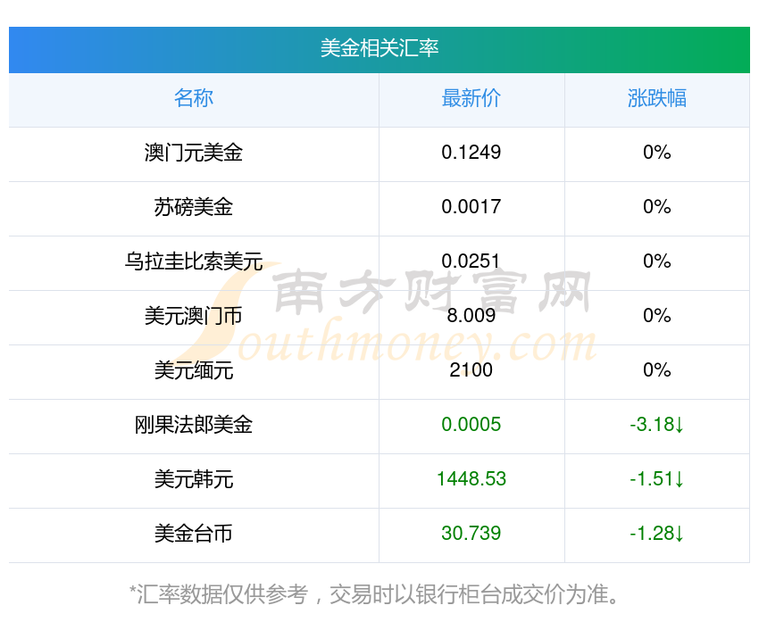 南方財(cái)富網(wǎng)為您提供美金對(duì)波幣匯率最新價(jià)格詳情。