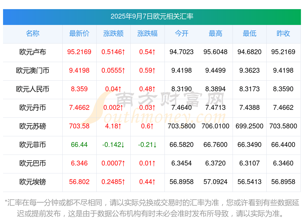 匯率在每一分鐘或都不盡相同,請以實際兌換或交易時的匯率為準,您或許看到有些數(shù)據(jù)延遲或提前發(fā)布,這是由于數(shù)據(jù)公布機構(gòu)有時未必會準時發(fā)布所導(dǎo)致,請以實際為準。