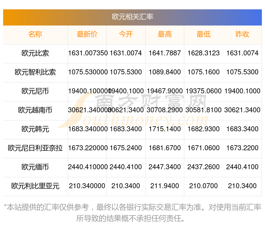 南方財(cái)富網(wǎng)為您提供歐元對(duì)摩洛哥迪拉姆匯率最新價(jià)格詳情。