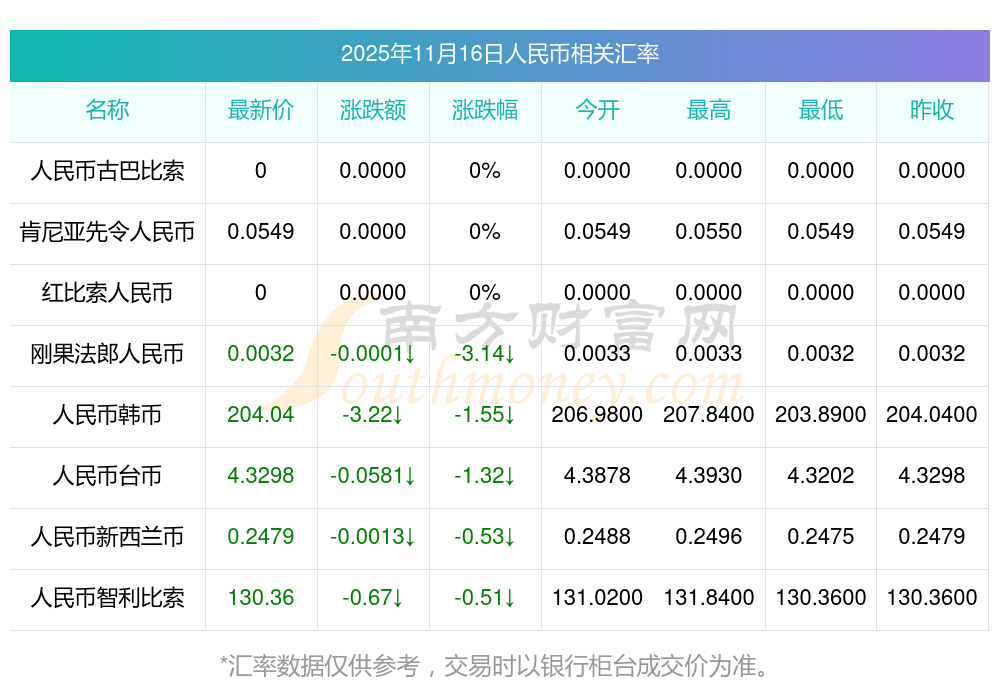 以上匯率數(shù)據(jù)僅供參考,請(qǐng)以各銀行實(shí)際交易匯率為準(zhǔn)。