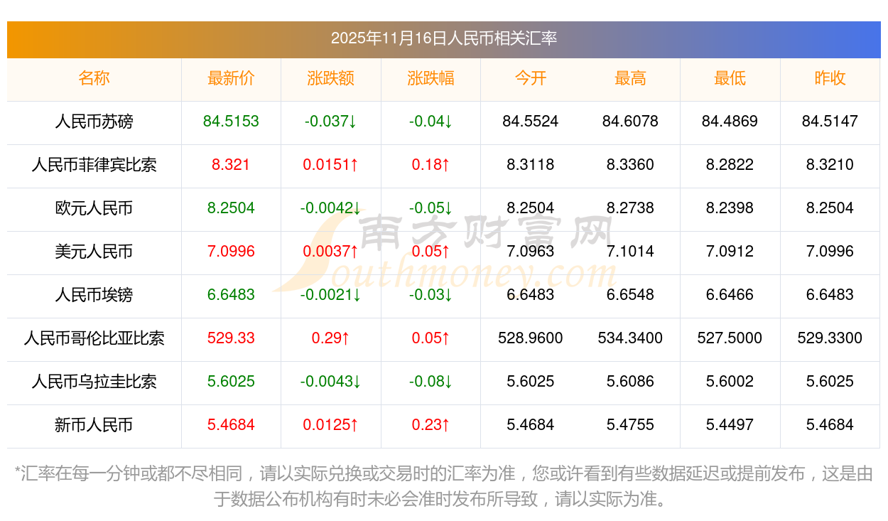 2025年11月16日人民幣相關(guān)匯率查詢(xún)