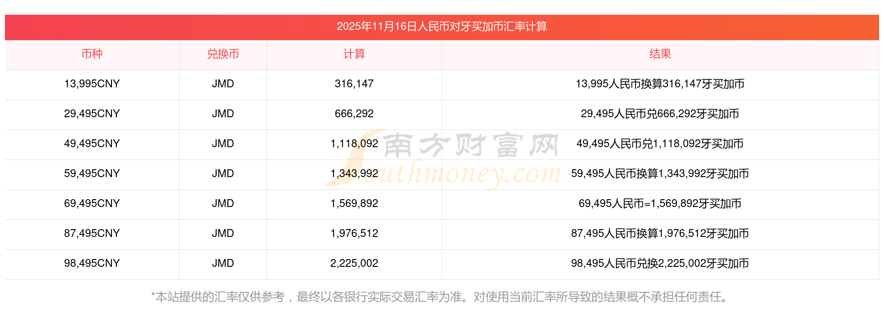 今日轉(zhuǎn)換匯率2025年11月16日: