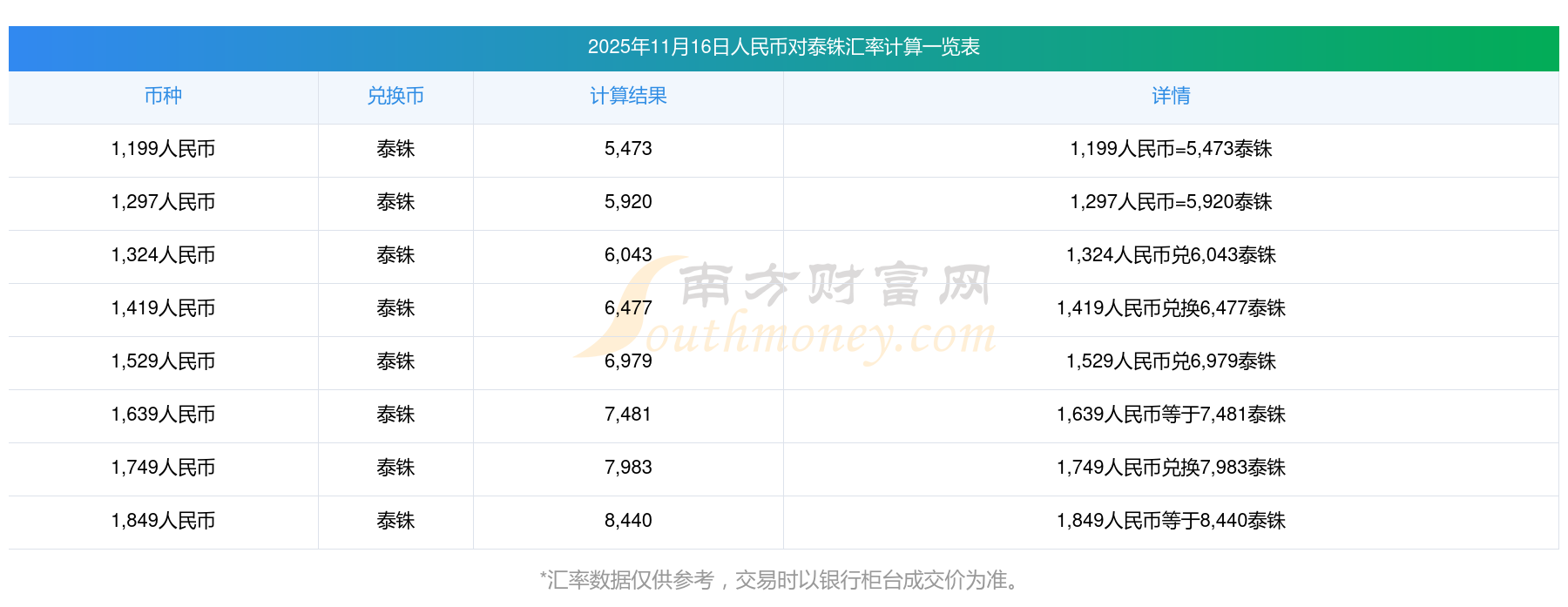 今日中間價(jià):人民幣1元對多少泰銖11月16日