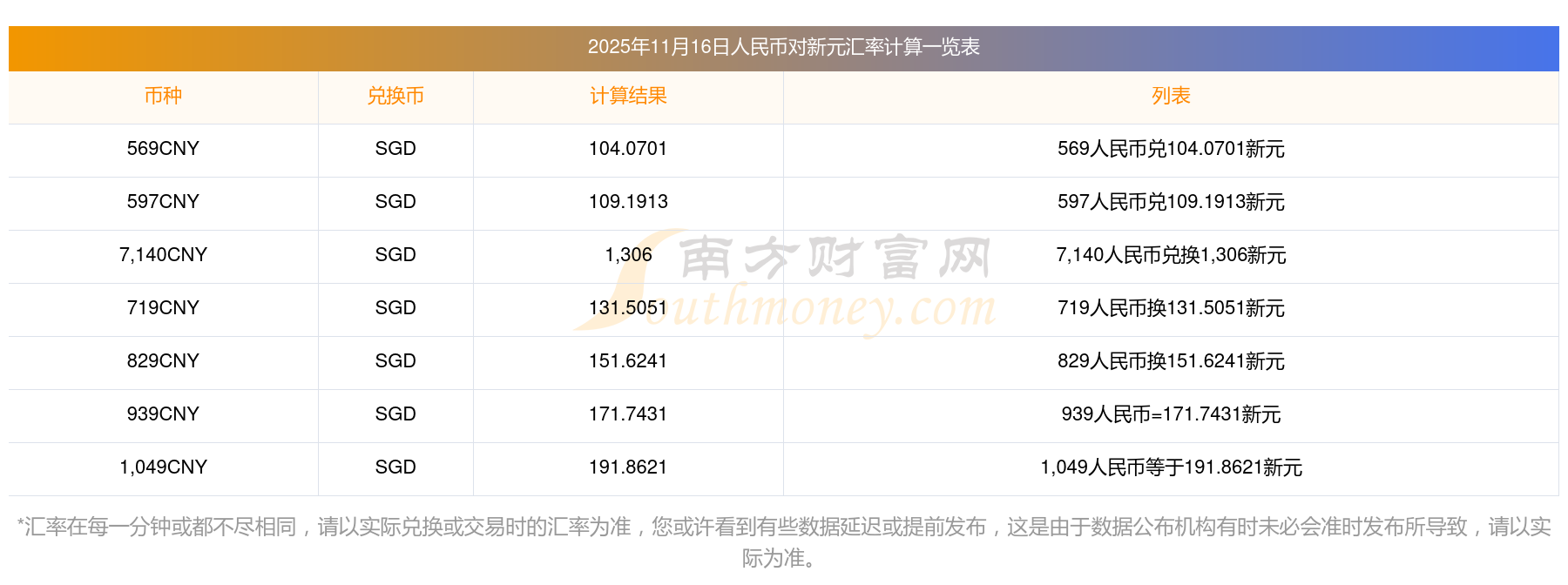 今日人民幣匯價(jià):2025年11月16日40人民幣兌新元匯價(jià)一覽表