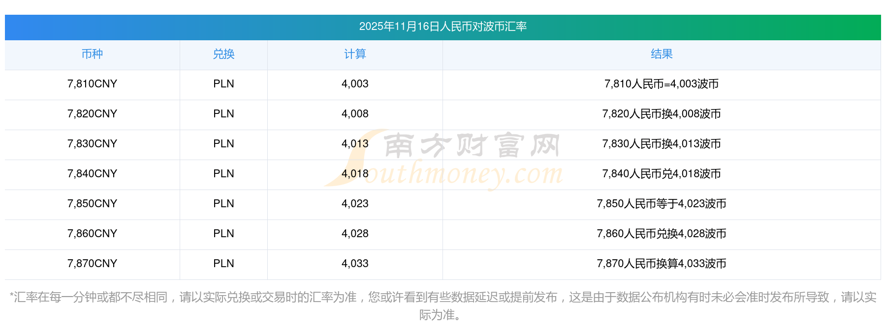 今日匯率中間價(jià):人民幣1元對多少波蘭茲羅提2025/11/16