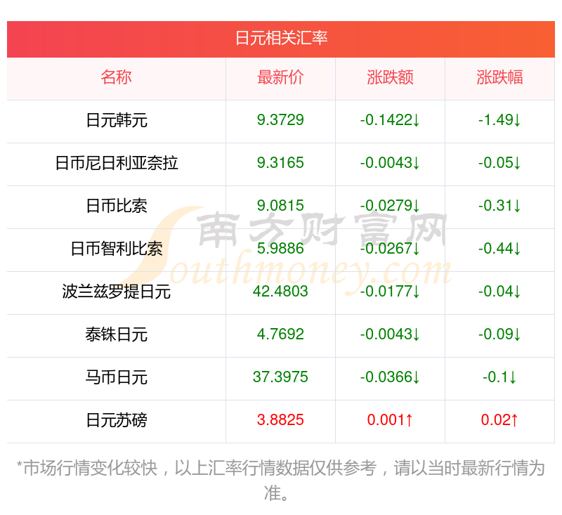 南方財(cái)富網(wǎng)為您提供日元對馬來西亞幣匯率最新價(jià)格詳情。