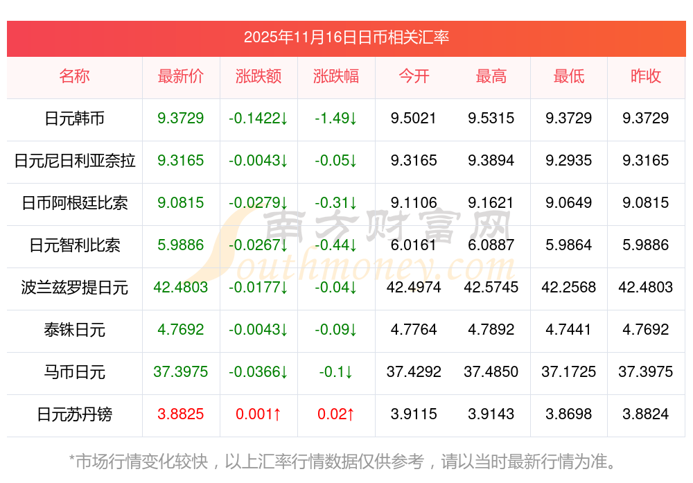 2025年11月16日日幣相關(guān)匯率查詢