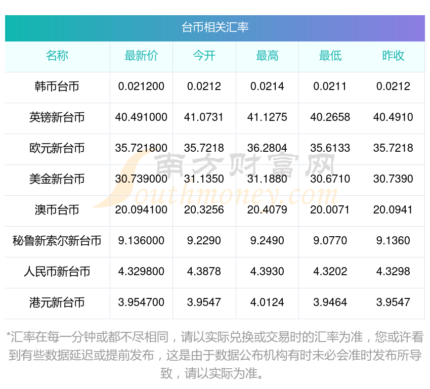 南方財(cái)富網(wǎng)為您提供臺(tái)幣對(duì)新加坡幣匯率最新價(jià)格詳情。