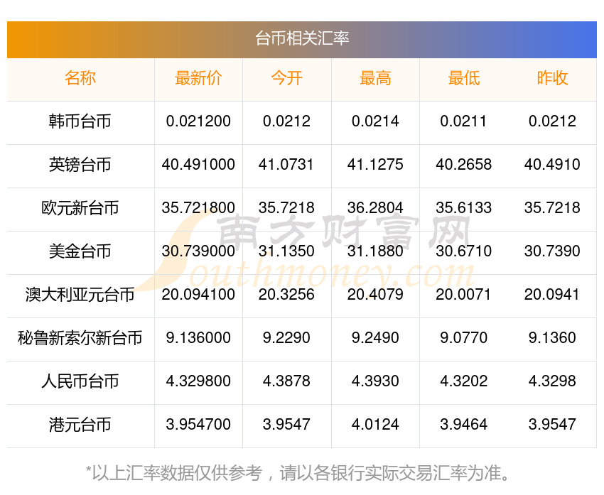 南方財(cái)富網(wǎng)為您提供臺(tái)幣對(duì)盧布匯率最新價(jià)格詳情。