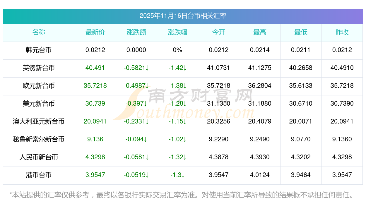 2025年11月16日臺(tái)幣相關(guān)匯率查詢