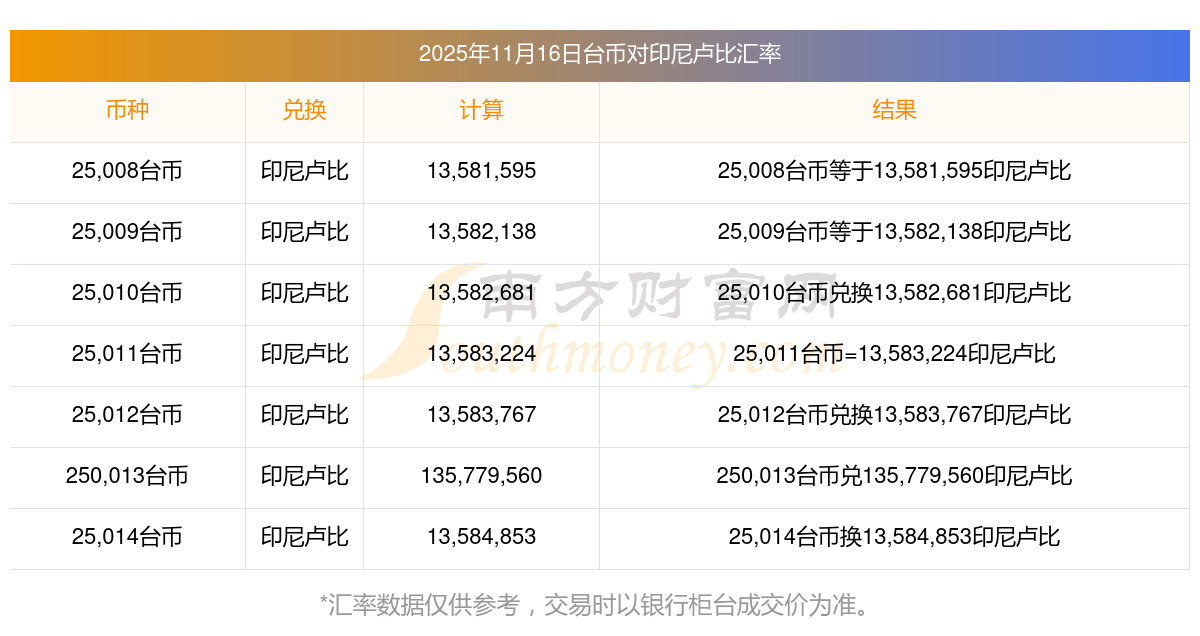 今天匯率更新!2025年11月16日58臺幣兌換印尼盧比是多少?
