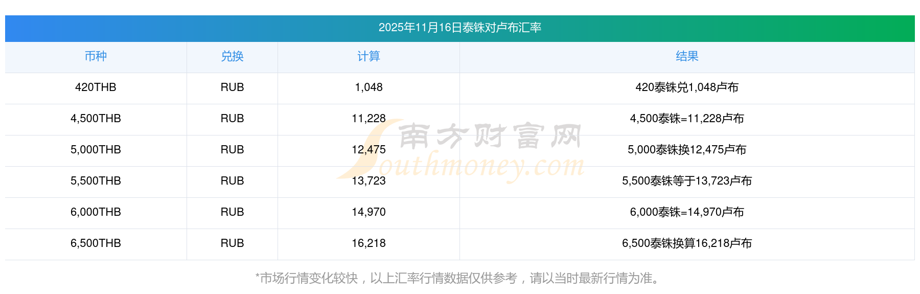 匯率查詢 | 9萬泰銖轉(zhuǎn)換盧布匯率是多少? 11-16