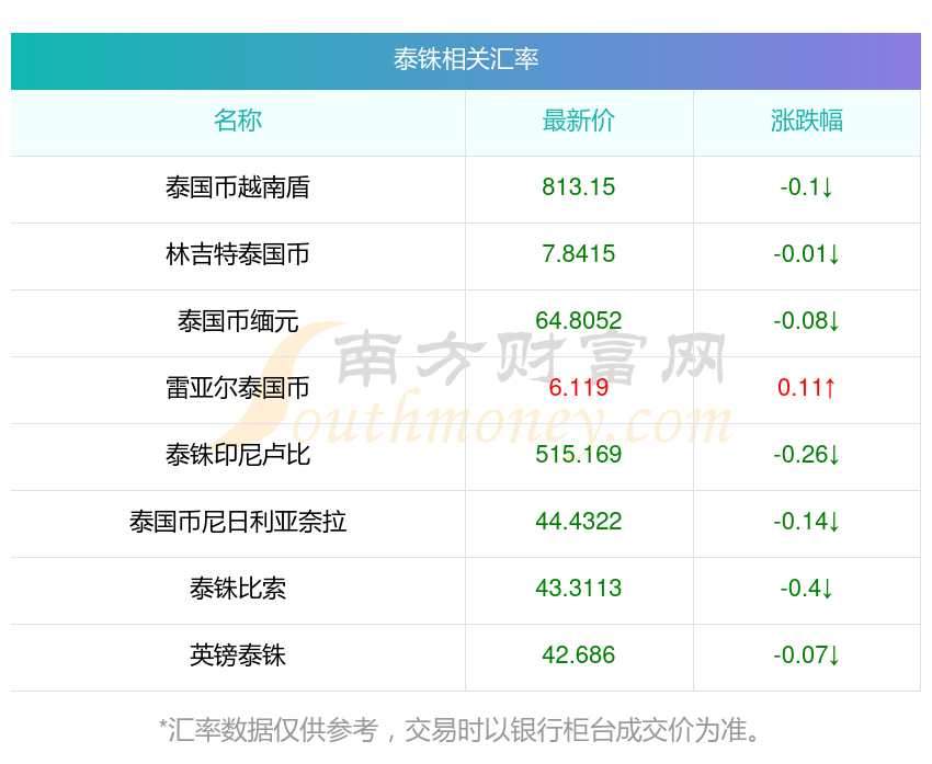 南方財(cái)富網(wǎng)為您提供泰銖對盧布匯率最新價(jià)格詳情。