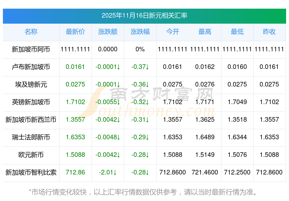 根據(jù)2025年11月16日匯率,新元兌換馬來(lái)西亞幣匯率最新3.183100,今開(kāi)3.1831,昨收3.1831,最高3.1872,最低3.1710。
