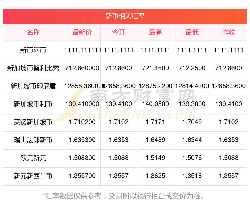 南方財富網(wǎng)為您提供新幣對挪朗匯率最新價格詳情。
