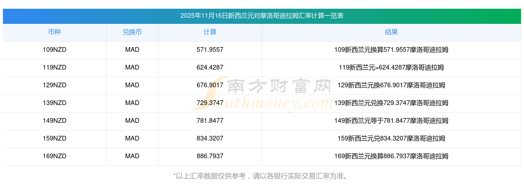 新西蘭元外匯價(jià)格查詢11-16 今日5新西蘭元能兌多少摩洛哥迪拉姆?