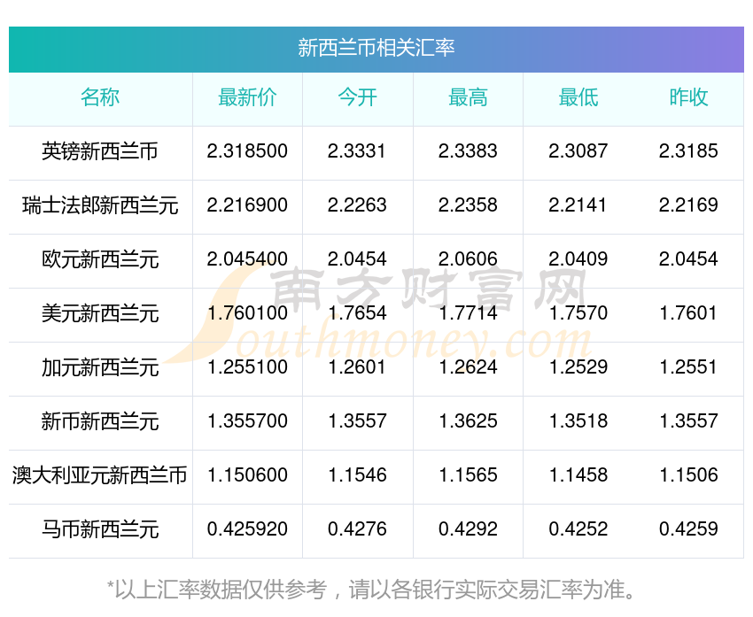 2025年11月16日新西蘭幣相關匯率查詢