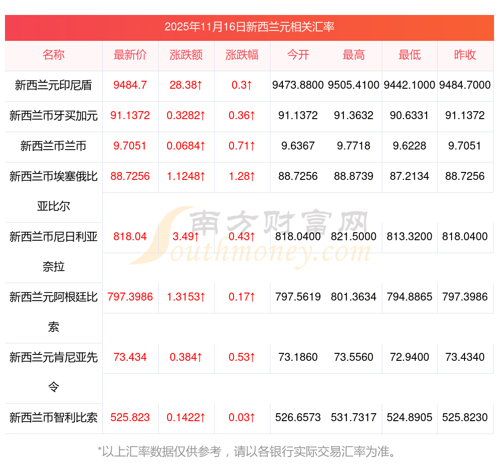 根據(jù)2025年11月16日匯率計算,NZD兌換COP匯率最新價2135.000000:今日開價2127.0000,昨日收價2135.0000,最高價2155.0000,最低價2117.0000。