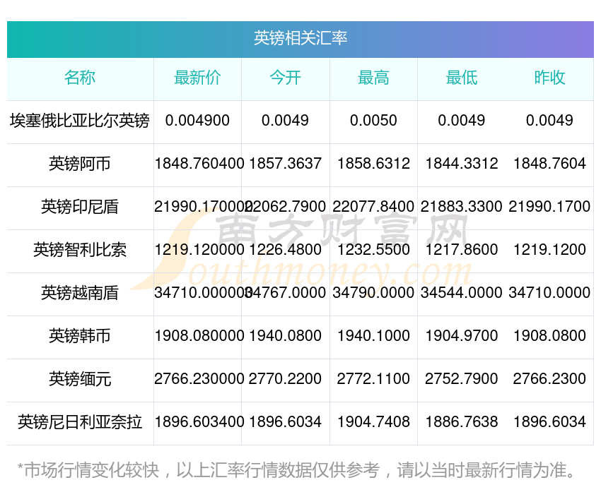 根據(jù)2025年11月16日匯率,英鎊兌換智利比索匯率最新1219.120000,今開1226.4800,昨收1219.1200,最高1232.5500,最低1217.8600。