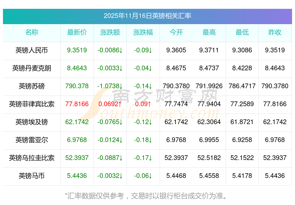 根據(jù)2025年11月16日匯率計(jì)算,GBP兌換SGD匯率最新價(jià)1.710200:今開價(jià)1.7102,昨收價(jià)1.7102,最高價(jià)1.7171,最低價(jià)1.7049。