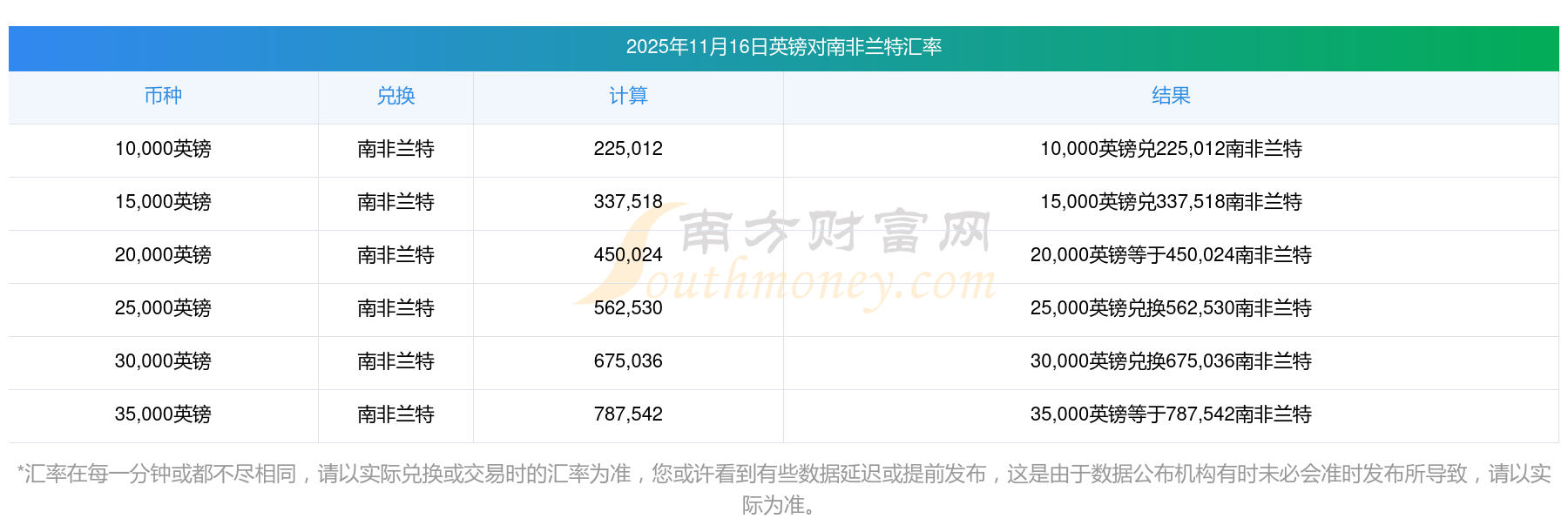 匯率實(shí)時(shí)更新!66英鎊兌換南非蘭特匯率表(2025年11月16日)