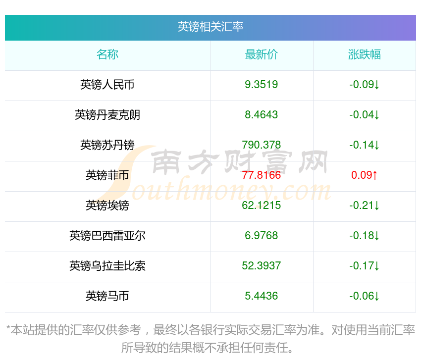 2025年11月16日英鎊相關(guān)匯率查詢