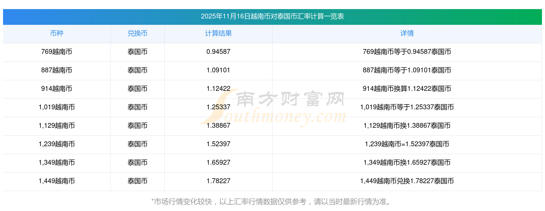 今天越南幣換成泰國(guó)幣匯率中間價(jià)是多少?146越南幣換多少?2025/11/16