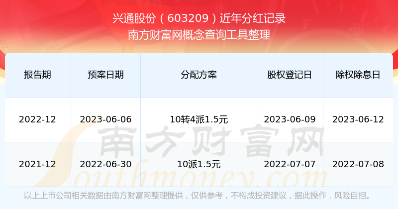 興通股份最新一次公布的分紅方案為10轉(zhuǎn)4派1.5元。本次權(quán)益分派股權(quán)登記日為2023年6月9日,除權(quán)除息日為2023年6月12日,派息日為2023年6月12日。
