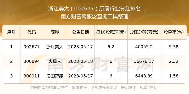 按照南方財(cái)富網(wǎng)趨勢選股系統(tǒng)統(tǒng)計(jì),浙江美大所屬行業(yè)為集成灶行業(yè),集成灶行業(yè)分紅排名情況如下表: