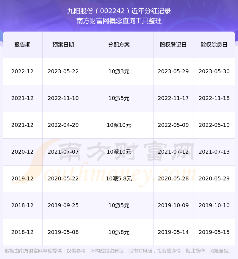 一、九陽(yáng)股份(002242)股票分紅記錄