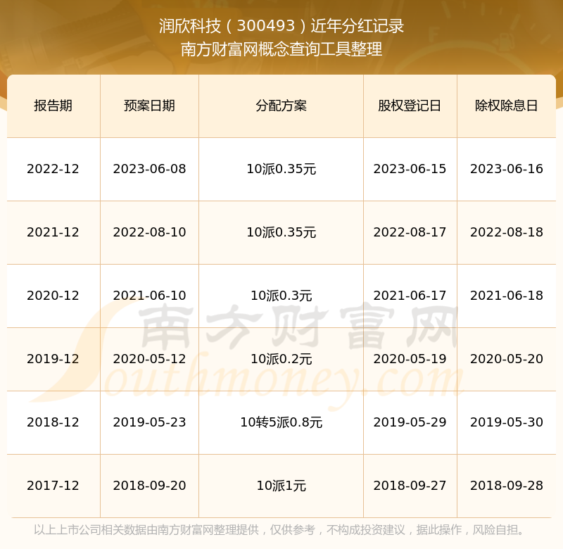 潤欣科技最新一次公布的分紅方案:10派0.35元。