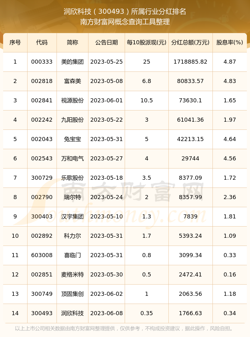 按照南方財(cái)富網(wǎng)趨勢選股系統(tǒng)統(tǒng)計(jì),潤欣科技所屬行業(yè)為半導(dǎo)體行業(yè),半導(dǎo)體行業(yè)分紅排名情況如下表: