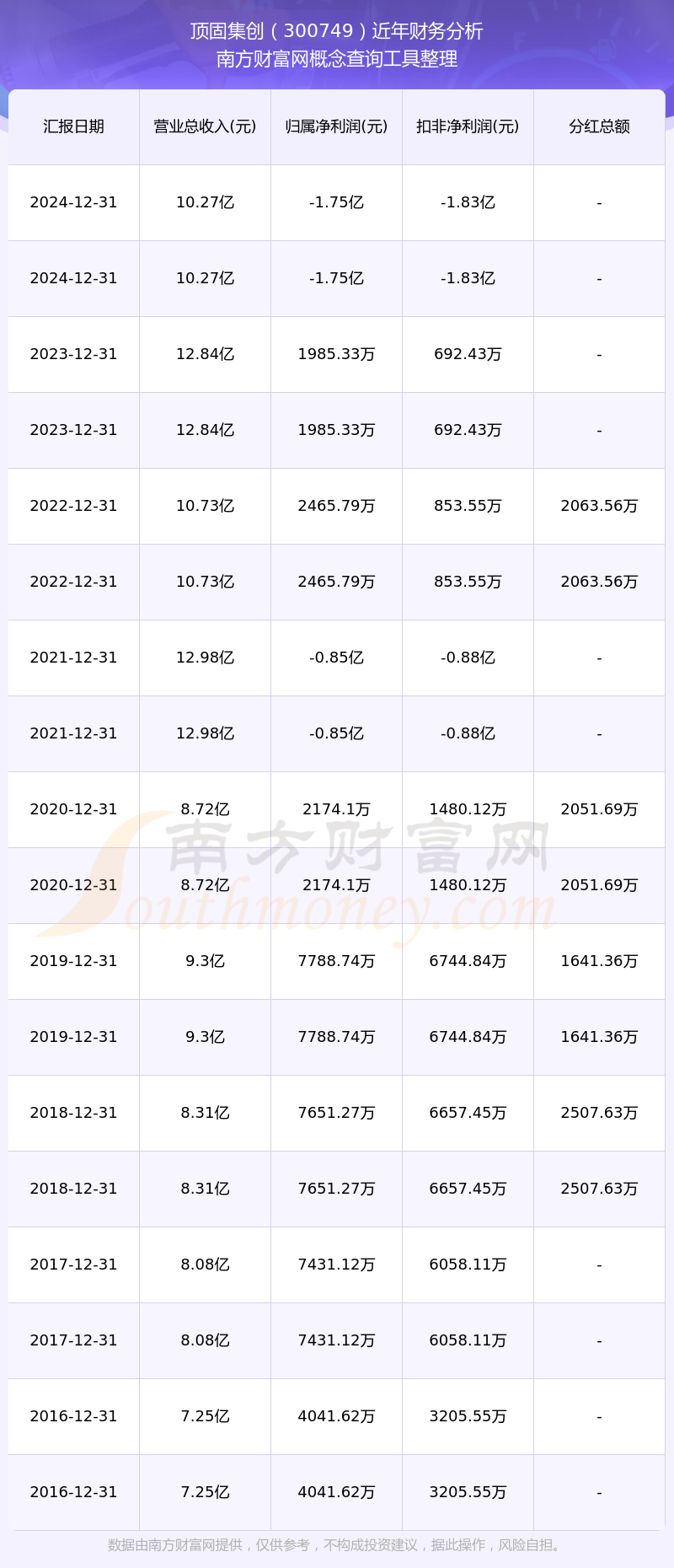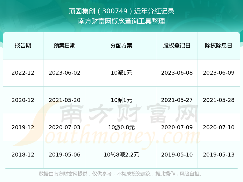 近年頂固集創(chuàng)分紅派息情況如下表所示: