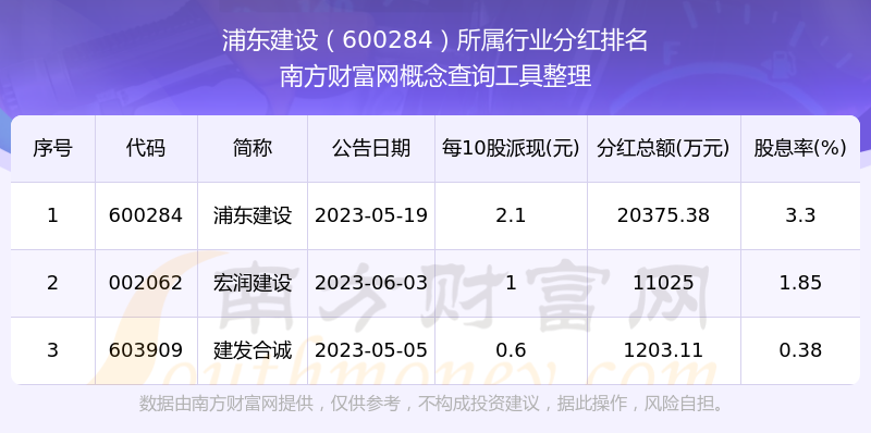 二、浦東建設600284行業(yè)分紅排名