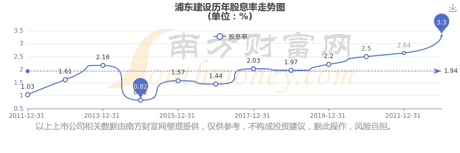 近年浦東建設年度股息率走勢如下圖: