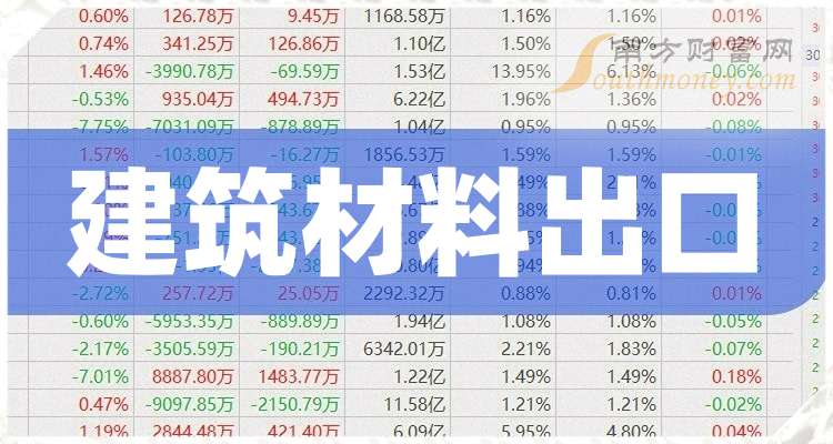 建筑材料出口題材上市公司有哪些?據(jù)南方財富網(wǎng)概念查詢工具數(shù)據(jù)顯示,建筑材料出口題材上市公司有: