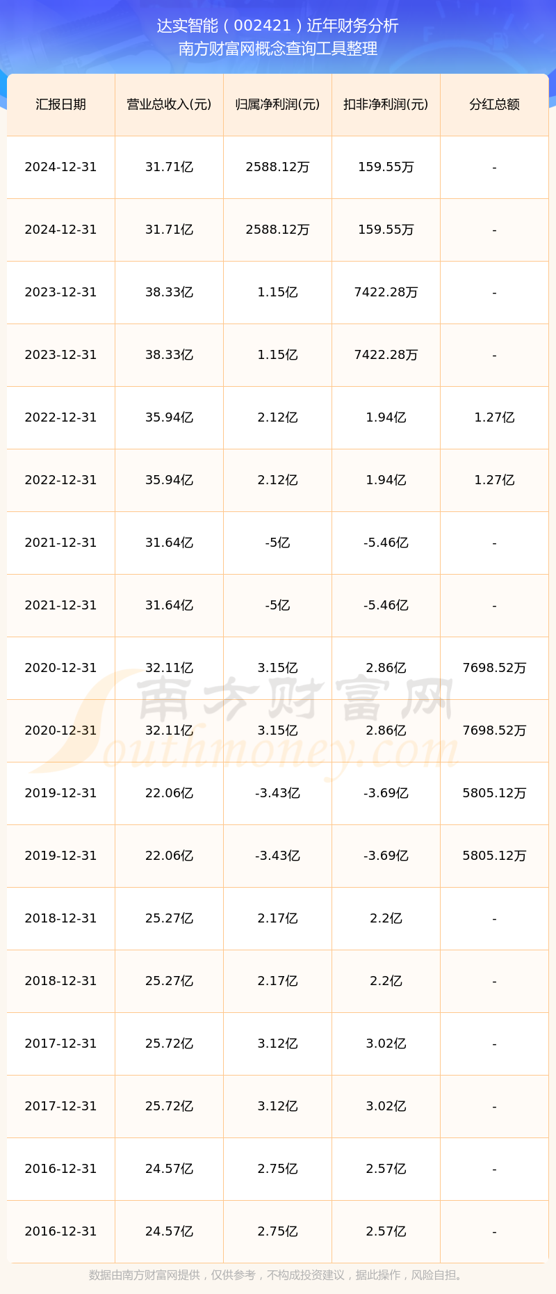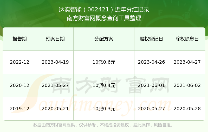 達實智能最新一次公布的分紅方案:10派0.6元。