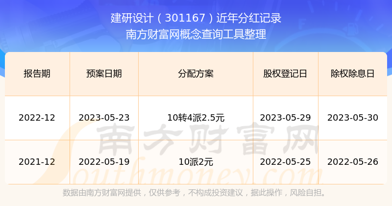 近年建研設(shè)計(jì)分紅派息情況如下表所示: