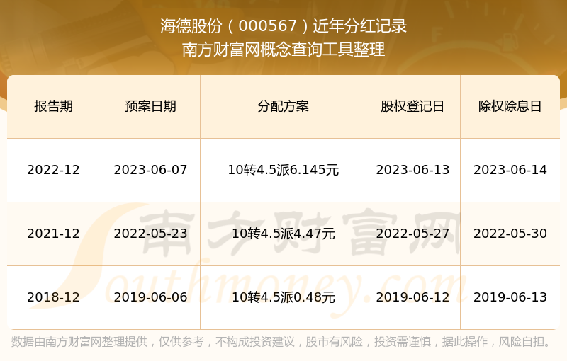 一、海德股份(000567)股票分紅記錄
