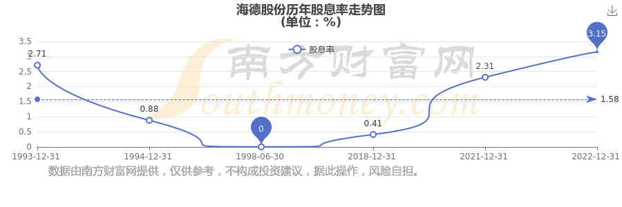 近年海德股份年度股息率走勢如下圖: