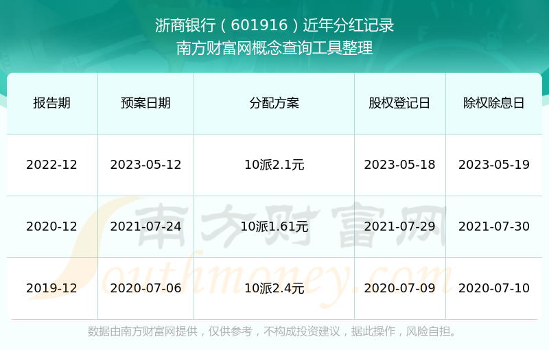 浙商銀行最新一次公布的分紅方案為10派2.1元。本次權(quán)益分派股權(quán)登記日為2023年5月18日,除權(quán)除息日為2023年5月19日,派息日為2023年5月19日。