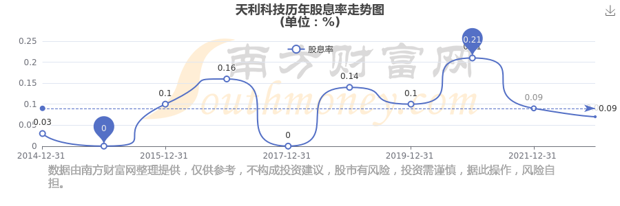 天利科技歷年股息率走勢如下圖: