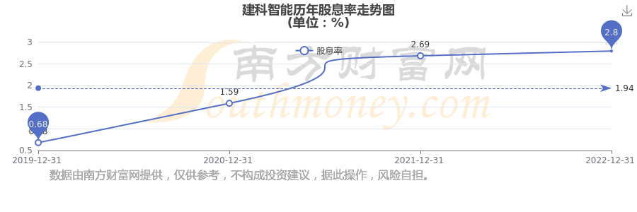 近年建科智能年度股息率走勢(shì)如下圖: