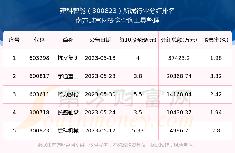 二、建科智能300823行業(yè)分紅排名