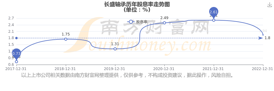 長盛軸承最新一次公布的分紅方案為10派3.5元。本次權(quán)益分派股權(quán)登記日為2023年5月31日,除權(quán)除息日為2023年6月1日,派息日為2023年6月1日。
