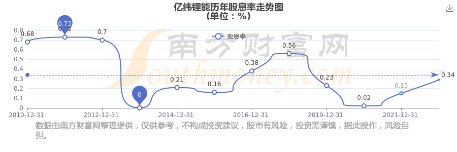 億緯鋰能歷年股息率走勢(shì)如下圖:
