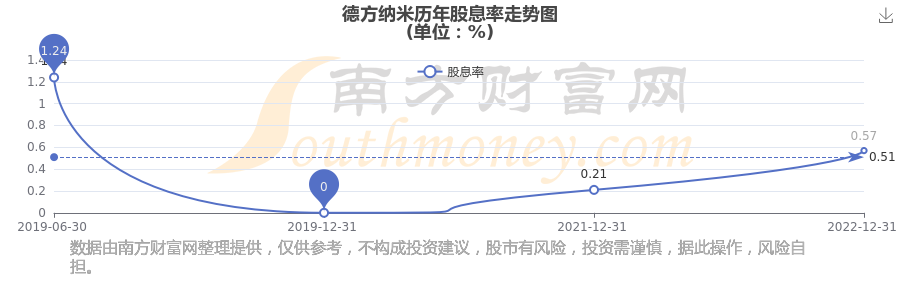 德方納米歷年股息率走勢如下圖: