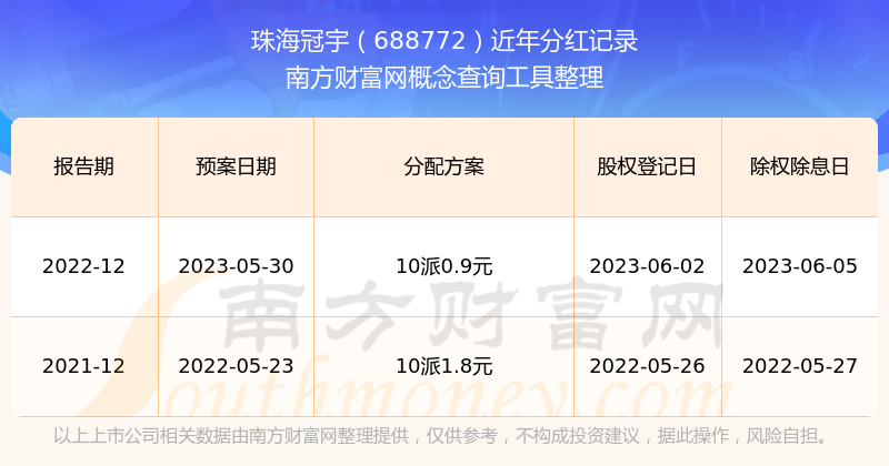 珠海冠宇最新一次公布的分紅方案:10派0.9元。